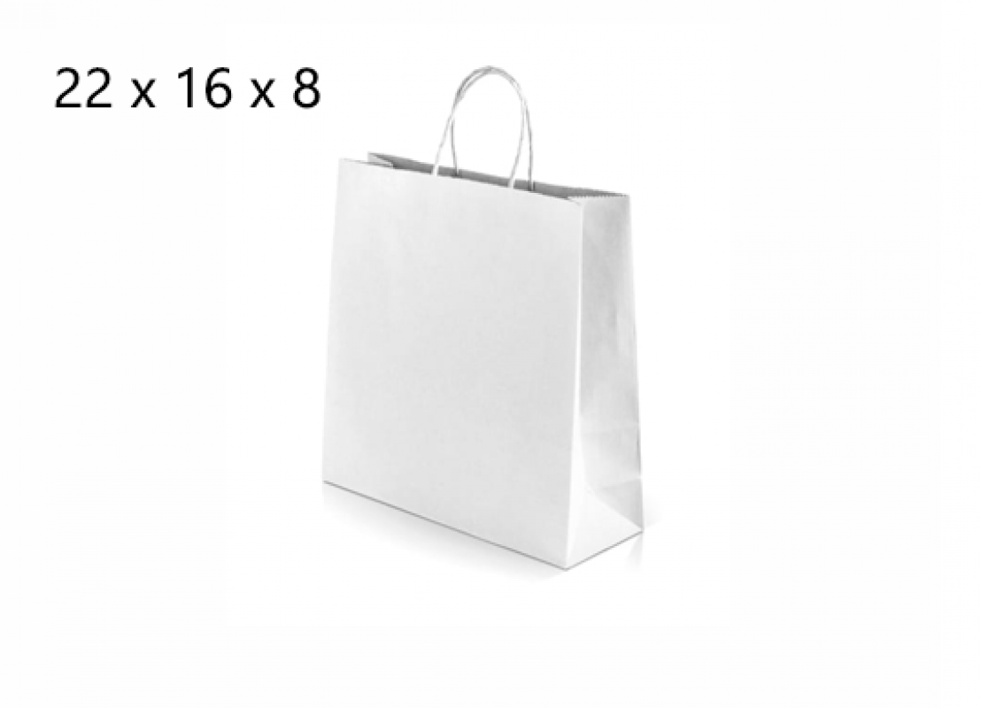 Punga hirtie alba 24*21*9, 80gr, cu minere rasucite 24219W