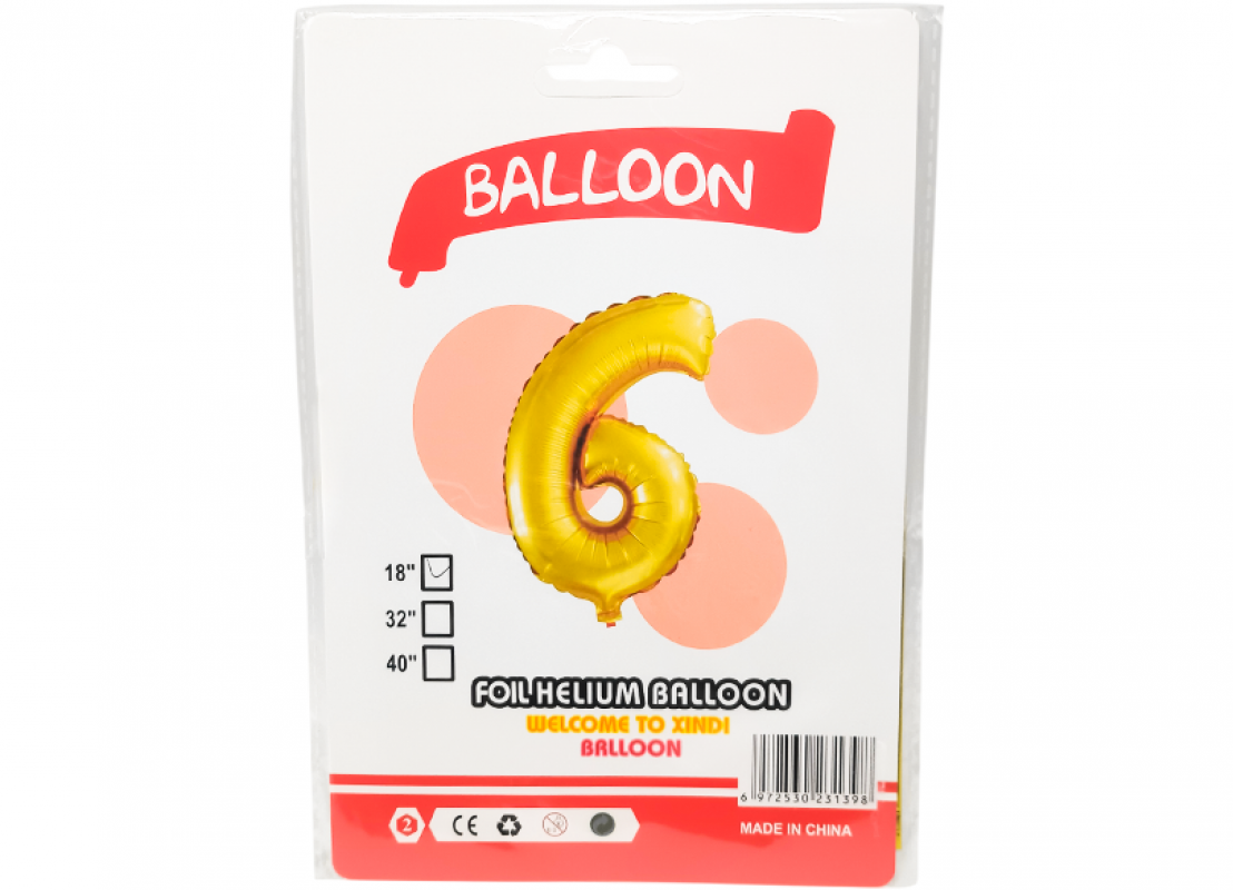 Balon folie Cifra 6 auriu 42cm 221690