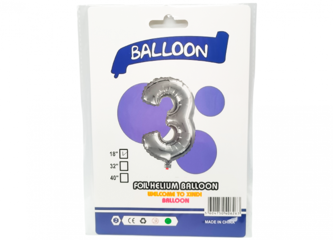 Balon folie Cifra 4 argintiu 42cm 221782
