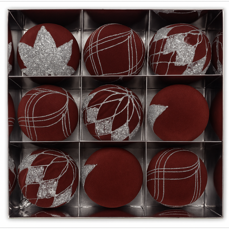 Jucarii pentru Brad set 12buc/6cm ML28-4(rosu,catifea) 231750