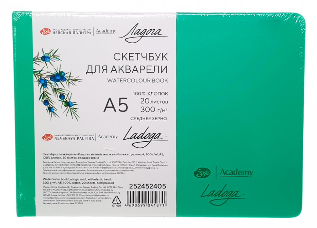 Sketchbook A6 20 foi Ladoga 300 gr. rosu cu elastic 252452412