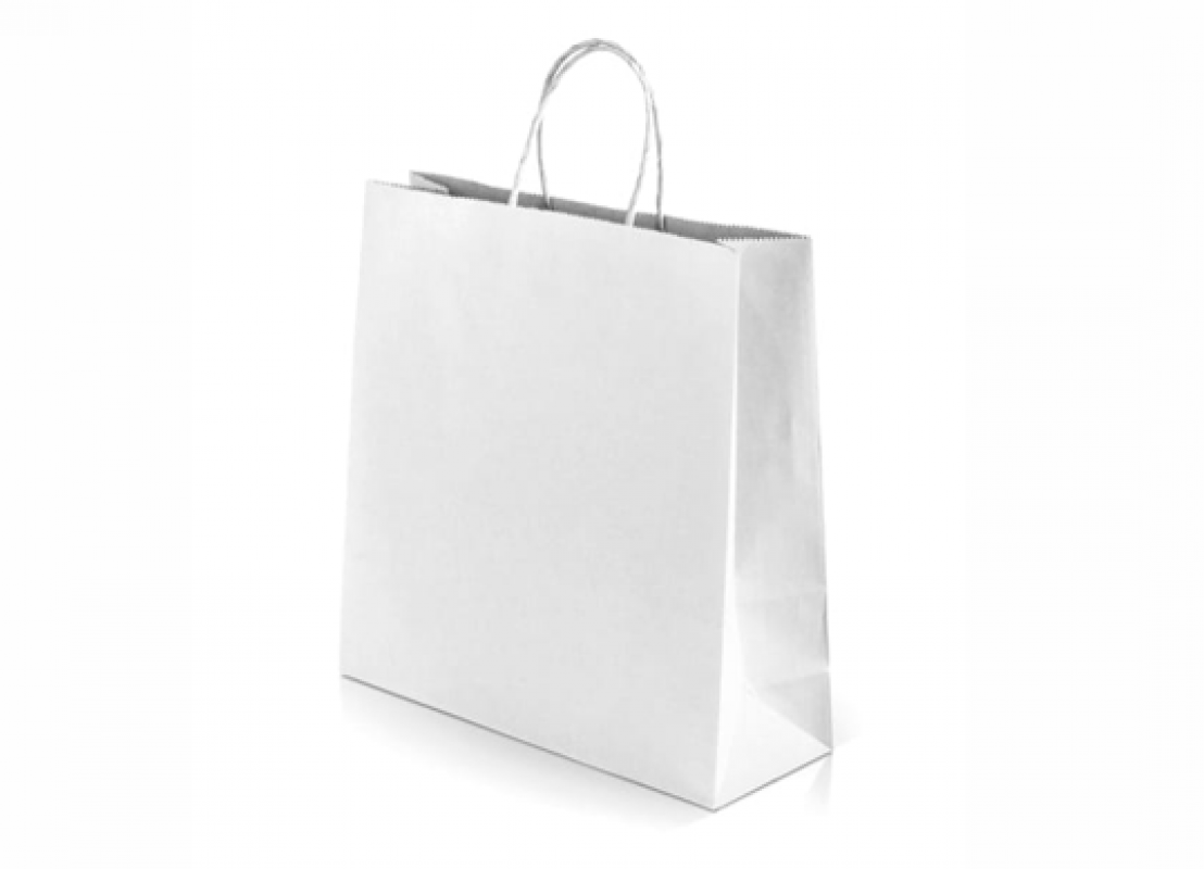 Punga hirtie alba 22*16*8, 80gr, cu minere rasucite 22168-80
