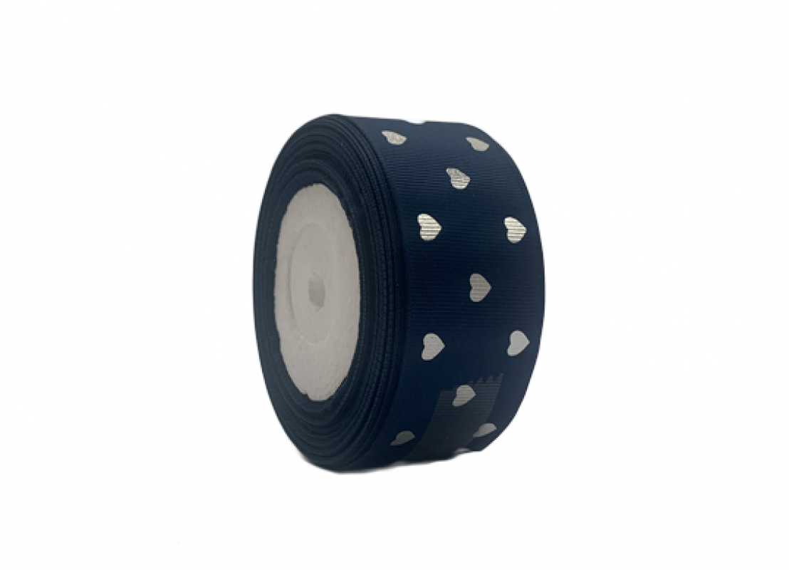 Panglica decorativa 2.5cm/23m (albastra, inimi argintii) AP005789-2