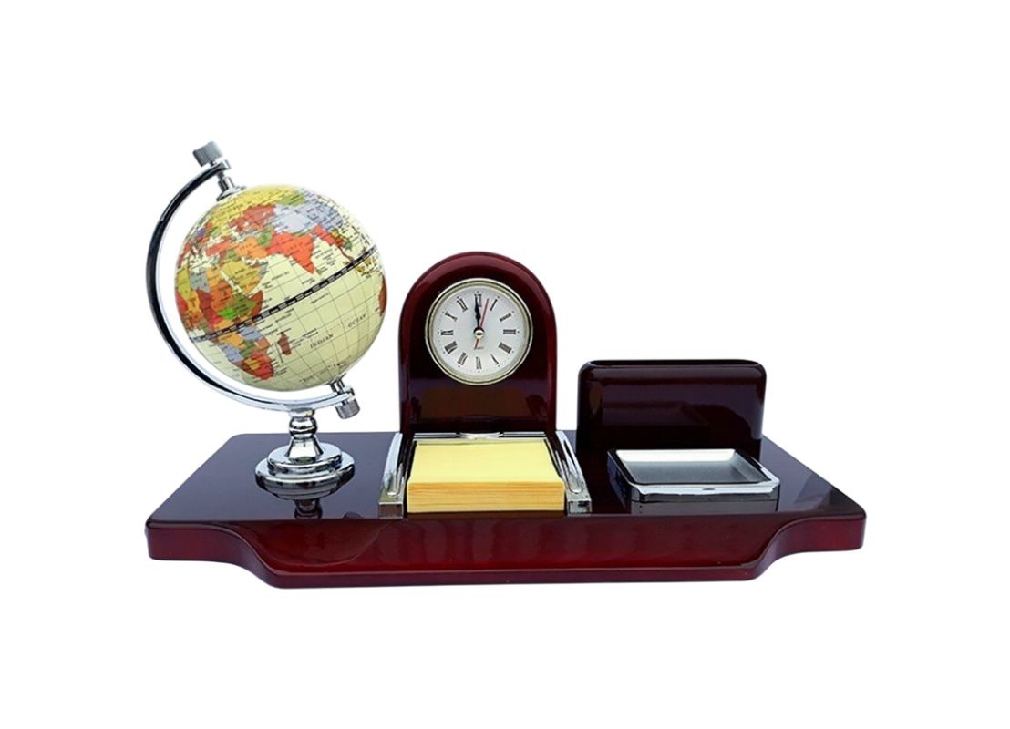 Set de birou lemn Glob/Ceas suport maro 34x19x16 DC192-22