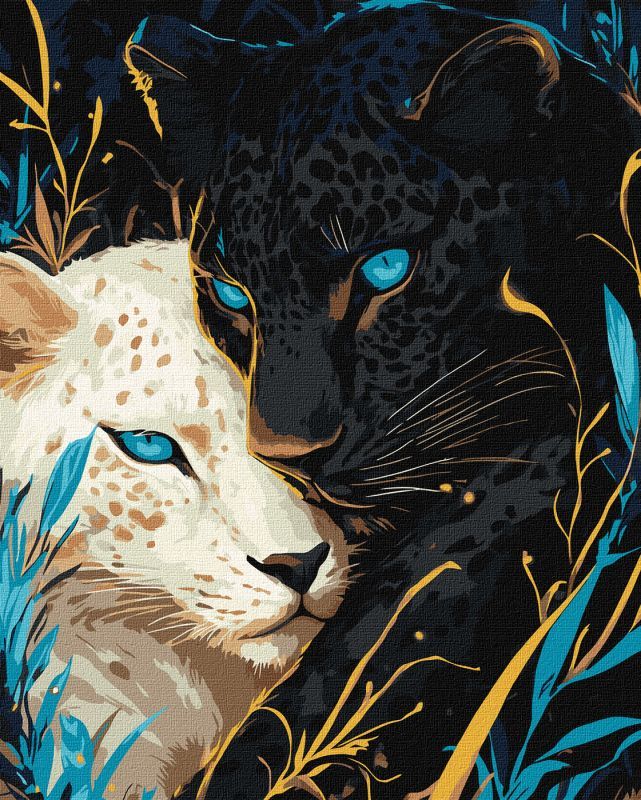 Tablou (30*40/cifre) Leoparzi cu ochi albastri (culori metalice) KHO6730