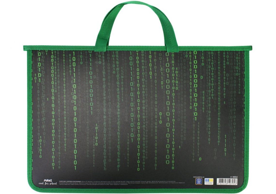 Material: polipropilenă. Grosime: 500 microni. Format: A4. Compartiment general cu fermoar și 2 compartimente în interior. Borduri de pânză. Fitinguri metalice.