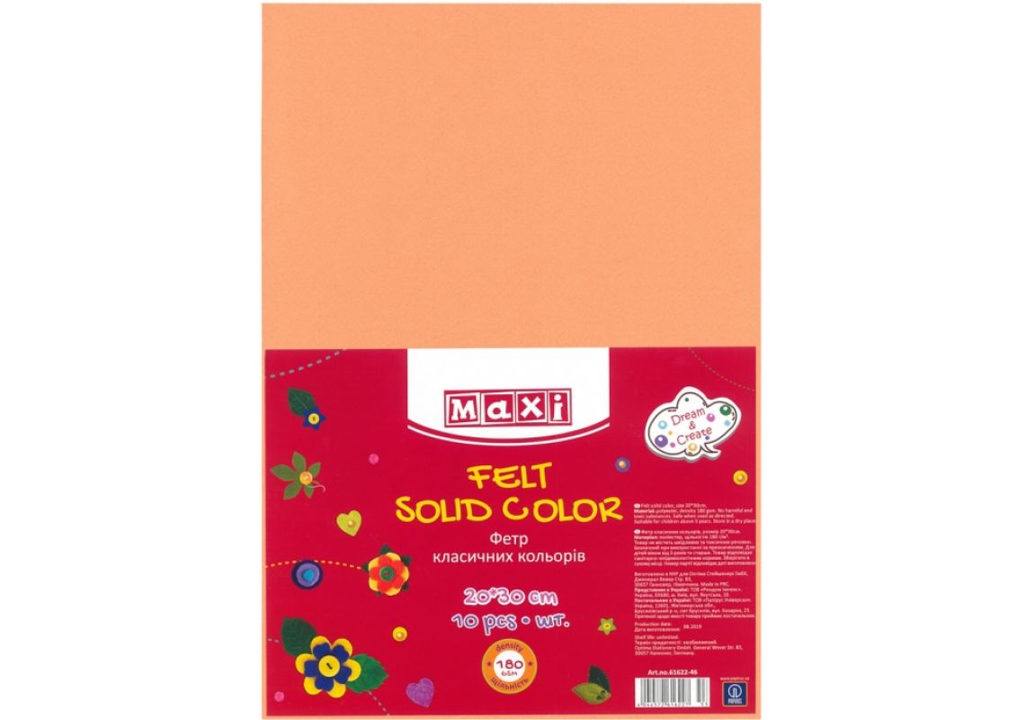 Fetru 20x30cm 180 gr/m2 Orange deschis MX61622-39