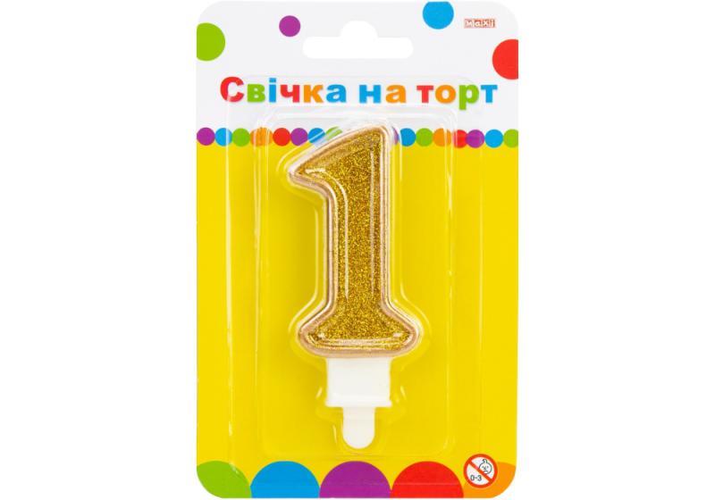 Lumanare-Cifra 1 Maxi cu sclipici aurie 2 parti 7.62cm MX622083-1
