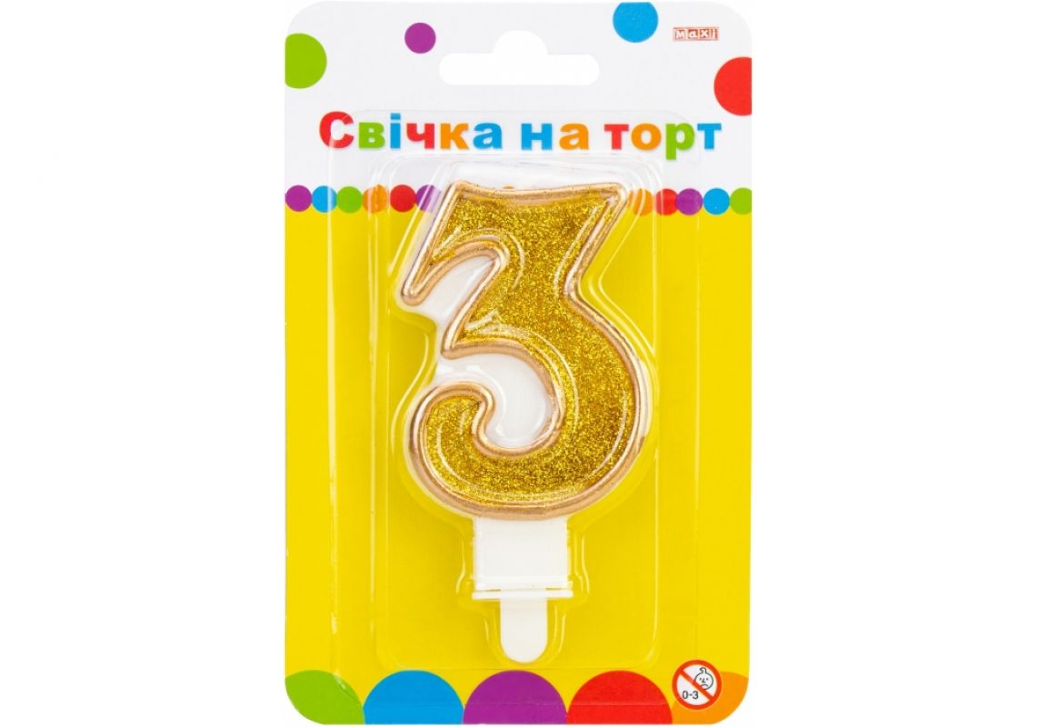 Lumanare-Cifra 3 Maxi cu sclipici aurie 2 parti 7.62cm MX622083-3