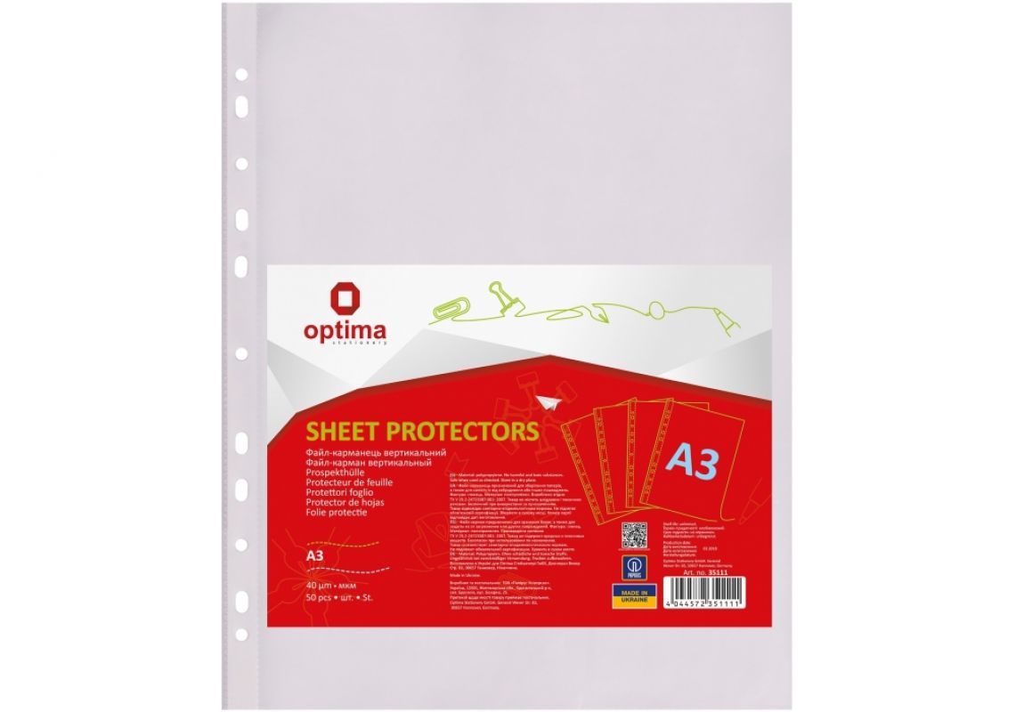 File plastic A3 Optima 40mk (50buc) verticale O35111