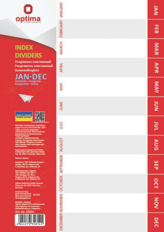 Separator Ian-Dec, A4, plastic O35814