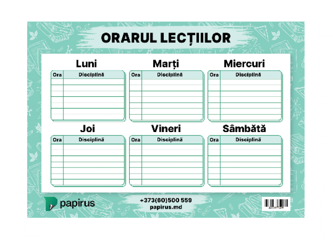 Orarul lectiilor A4 ORAR A4