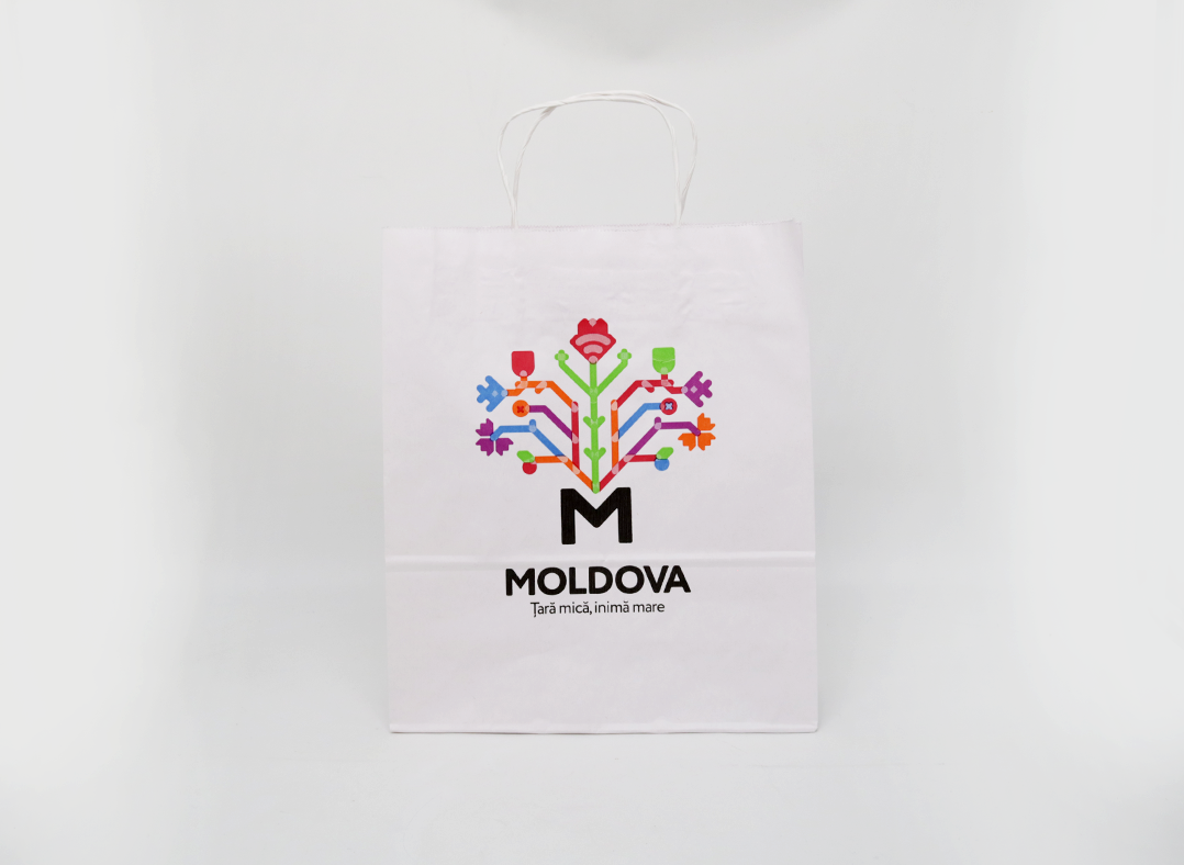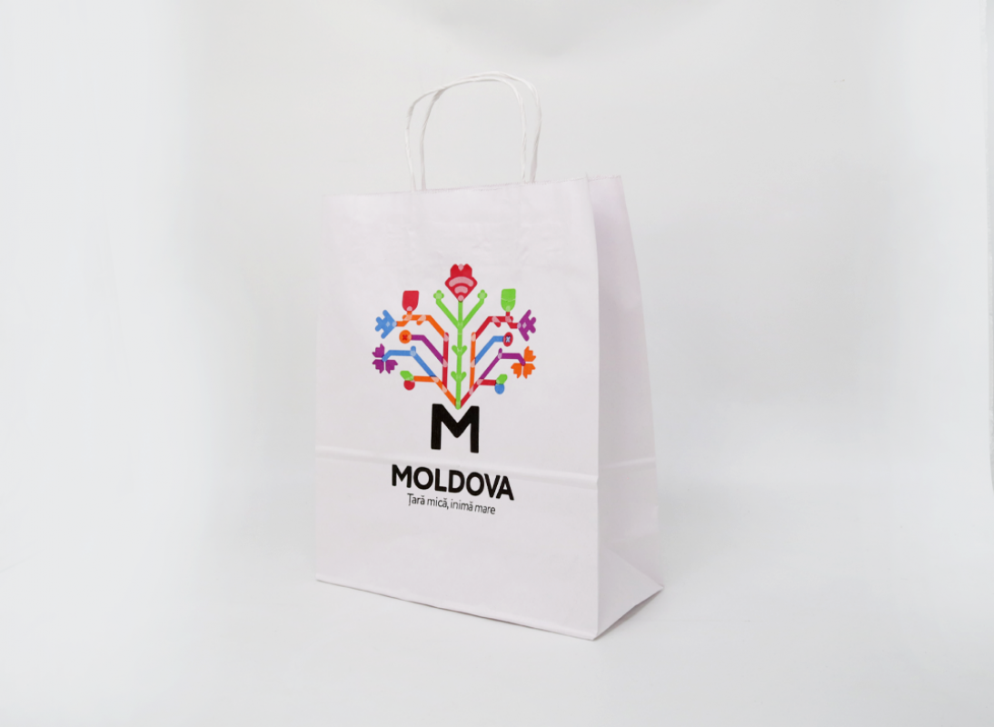 Punga hirtie alba 22*16*8, 80gr, cu minere rasucite 22168-80
