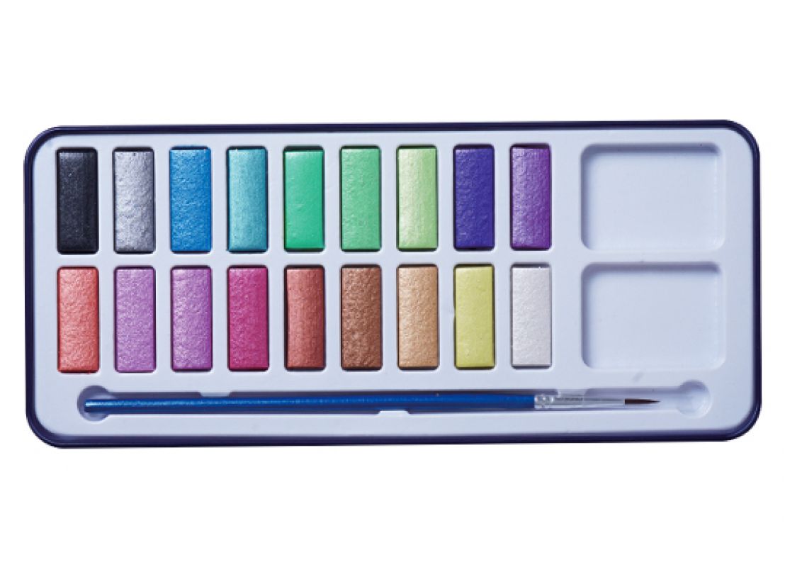 Acuarela Conda 32cul perlate+pensula rezervor (cutie metal) A1400638