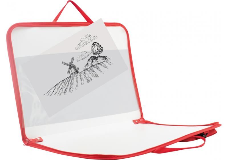 Material: polipropilenă; grosime plastic 600 microni; dimensiune: 45 * 53 * 8 cm; 2 compartimente cu velcro; mânere din plastic; Ideal pentru transportul de artă și consumabile de desen.