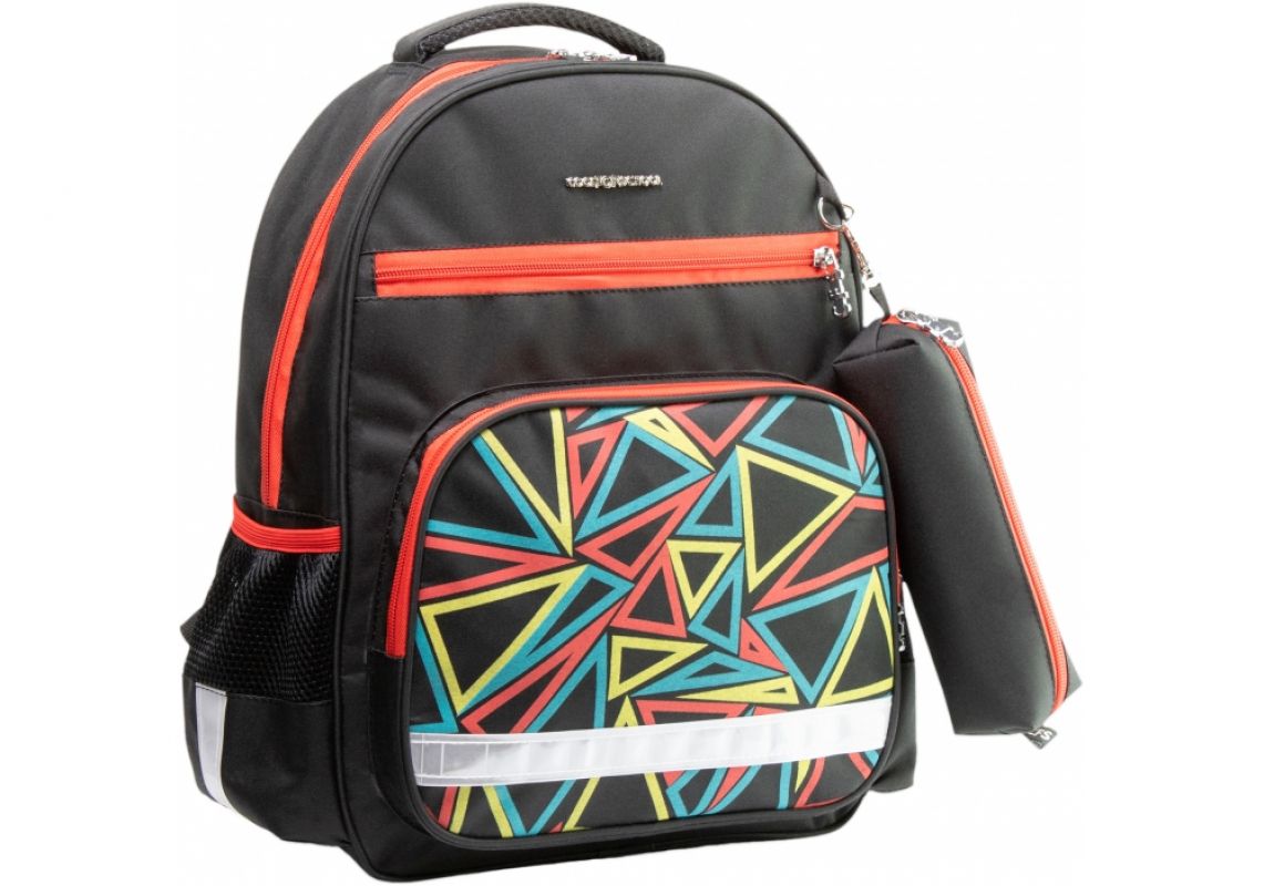 Dimensiune: 40 * 30 * 17 cm. Material: poliester 300 D, spate ortopedic, 1 compartiment cu fermoar cu cutie pentru creioane, 2 buzunare frontale cu fermoar; mâner puternic; 2 buzunare laterale din plasă; în interior există 2 compartimente pentru cărți și o bandă elastică; menajeră cu organizator; bretele ergonomice reglabile în formă de S cu curea de descărcare; detalii reflectorizante, cleme metalice duble. Garanție pentru defecte de fabricație 60 de zile. Fabricat în Ucraina.
