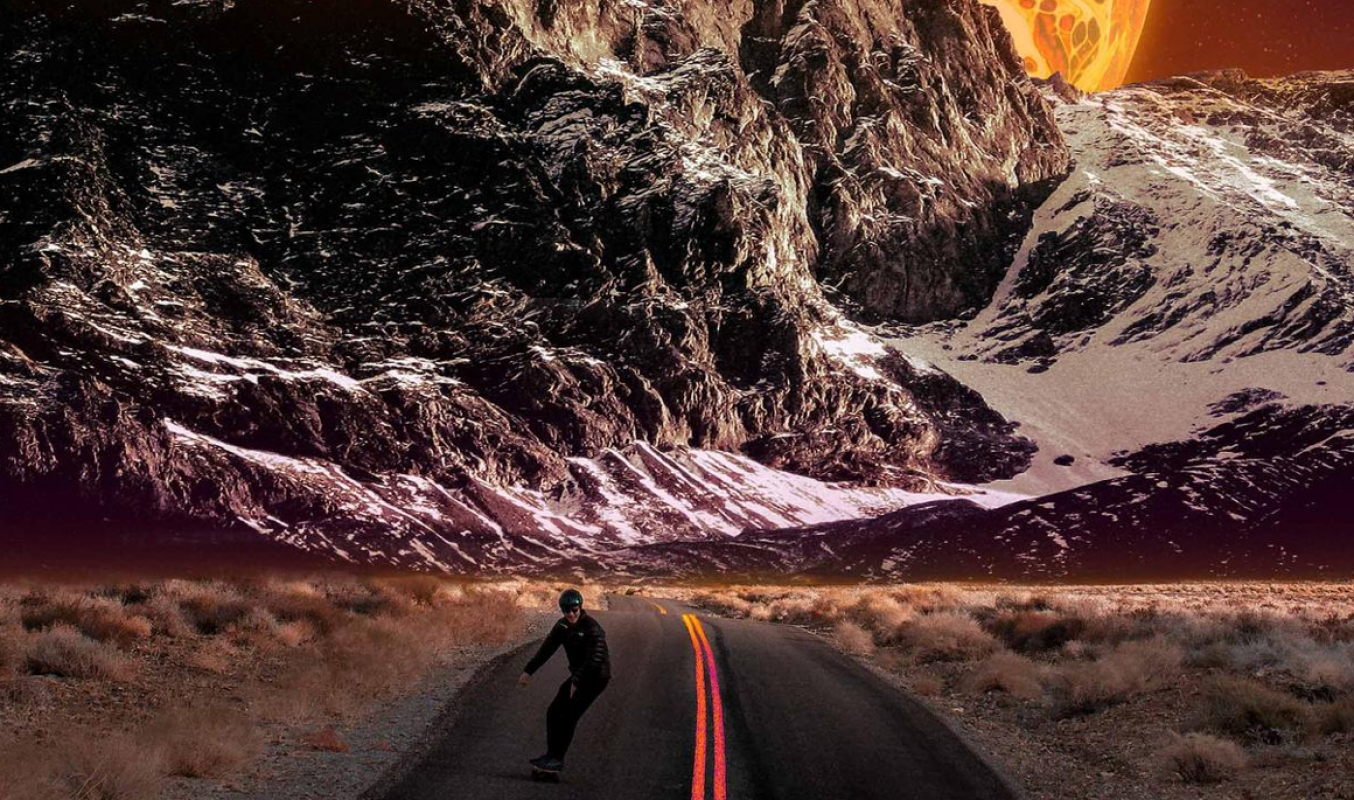 Tablou cu DIAMANTE 30x40 Skater in munti (fara sasiu) GLD63354
