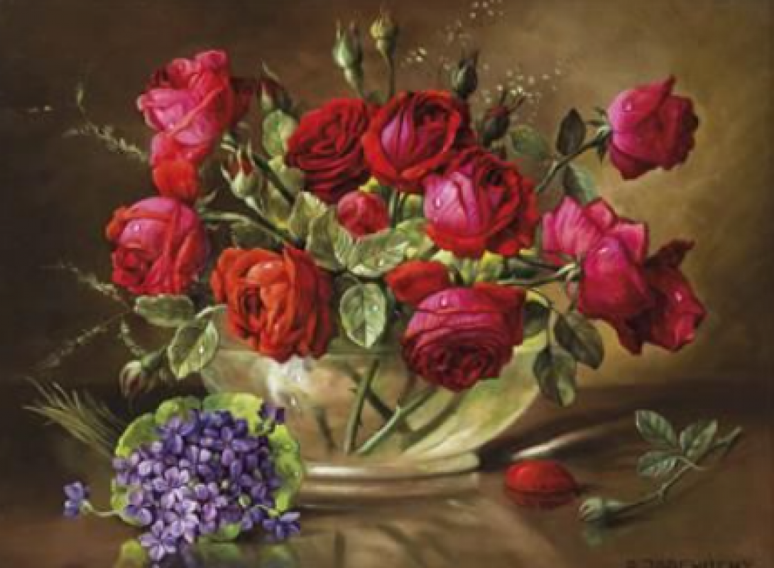 Tablou cu DIAMANTE 30x40 Buchet de trandafiri (fara sasiu) GLD63360