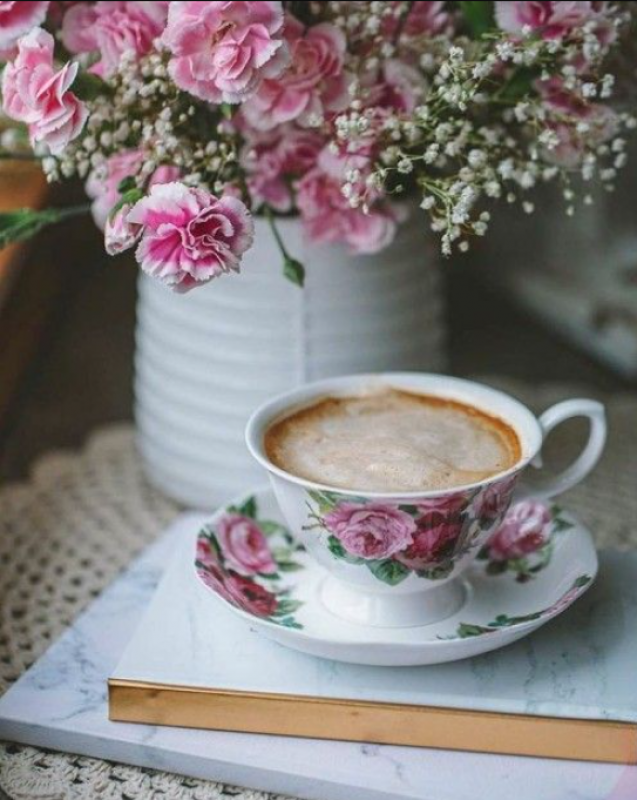 Tablou cu DIAMANTE 40x50 Cafeluta si buchet de flori (fara sasiu) GLE77655