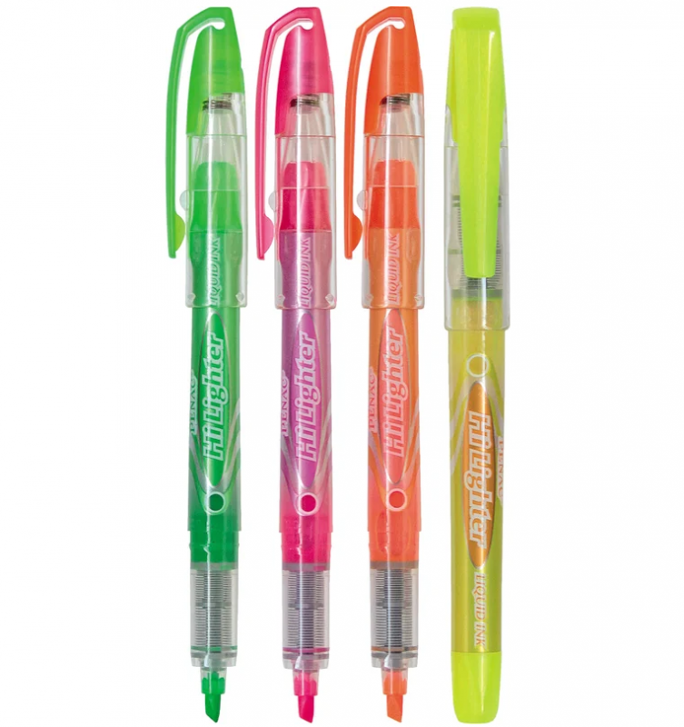Evidențiatoarele de text Penac Hi Lighter sunt concepute pentru a evidenția textul pe orice tip de hârtie. Cerneala unică are un sistem Free Ink („cerneală lichidă”) care garantează performanțe ridicate atunci când este utilizată. Datorită cernelii speciale pe bază de apă, markerele nu se usucă fără capac timp de 4 ore, sunt inodore și se usucă instantaneu pe orice tip de hârtie, fără a o satura sau murda textul. Vârful teșit, rezistent la uzură, vă permite să desenați perfect chiar și linii subțiri de la 1 la 4 mm, nu este supus deformării și scrie încet. Rezistența ridicată la lumină și fluorescența cernelii asigură linii clare pentru mulți ani, fără a întuneca textul. Culoarea clemei și a corpului se potrivește cu culoarea cernelii. Setul include 4 culori. Marcatoarele universale pentru desen sunt perfecte pentru evidențiere, schiță și litere.