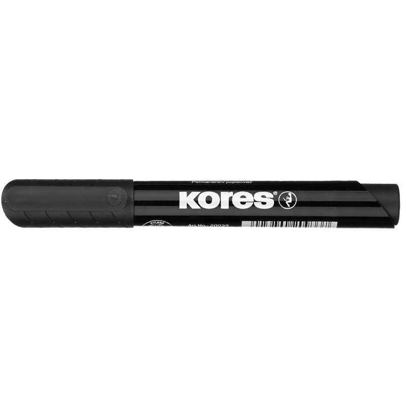 Markerul permanent Kores 20930 este potrivit pentru scris pe orice suprafață. Corpul său ergonomic din plastic are un vârf rotund care oferă o lățime a liniei de 1,5 până la 3 mm. Markerul măsoară 145 x 16 mm cu capac și 132 x 16 mm fără capac. Fabricat în Republica Cehă, are cerneală permanentă și sistem Cap-Off. Culoarea este neagră. Capacul poate fi pus la loc pe marker pentru a preveni pierderea acestuia. Capacul rămâne uscat până la 10 zile cu capacul deschis.