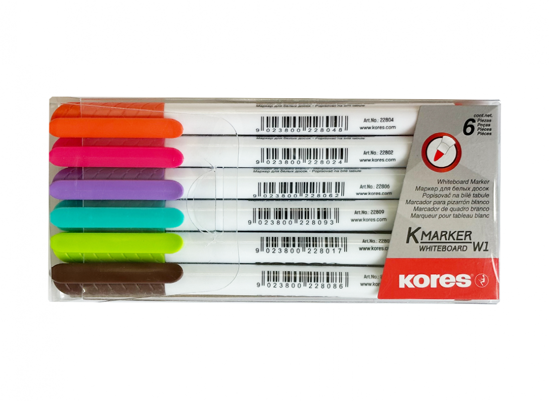 Marker Whiteboard Kores Set (3mm/virf rotund/6cul) K20802