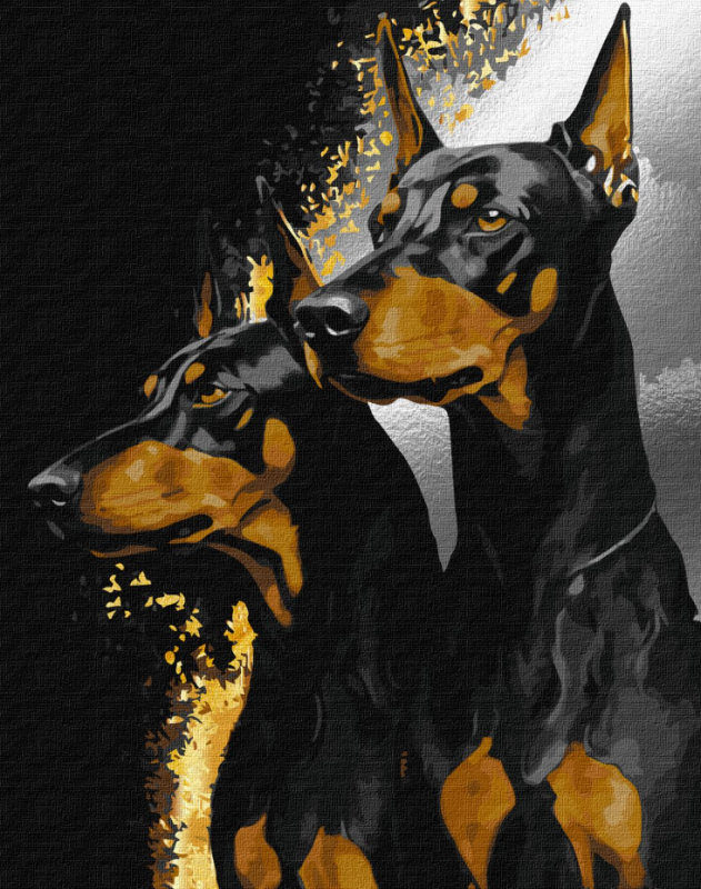 Tablou (40*50/cifre) Dobermani fideli (culori metalice) KHO6524