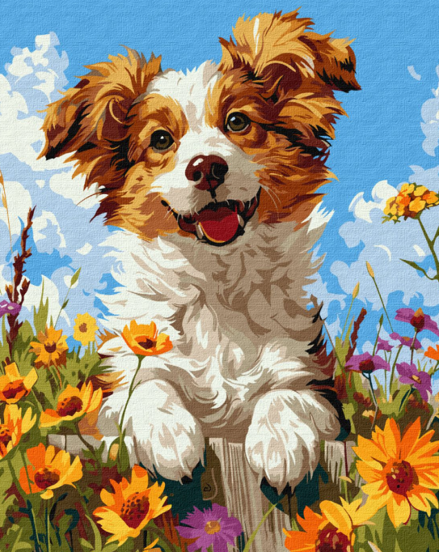 Tablou (40*50/cifre) Catel în flori KHO6624