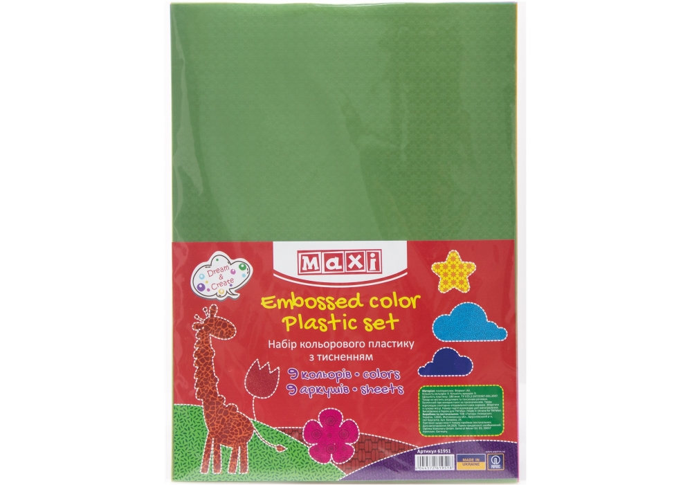 Plastic set MAXI Embosat A4 9 culori 9 foi 180 gr MX61951