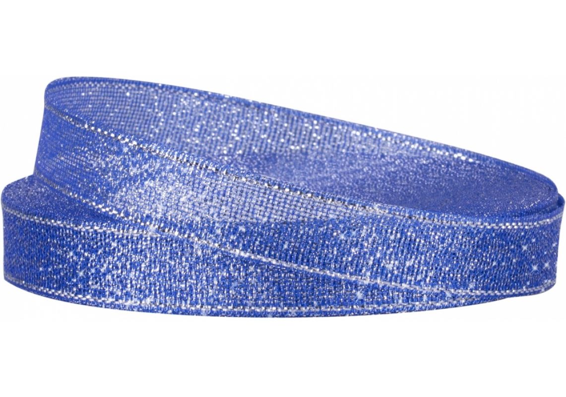 Panglica decorativa 2.5cm/23m (albastra, inimi argintii) AP005789-2