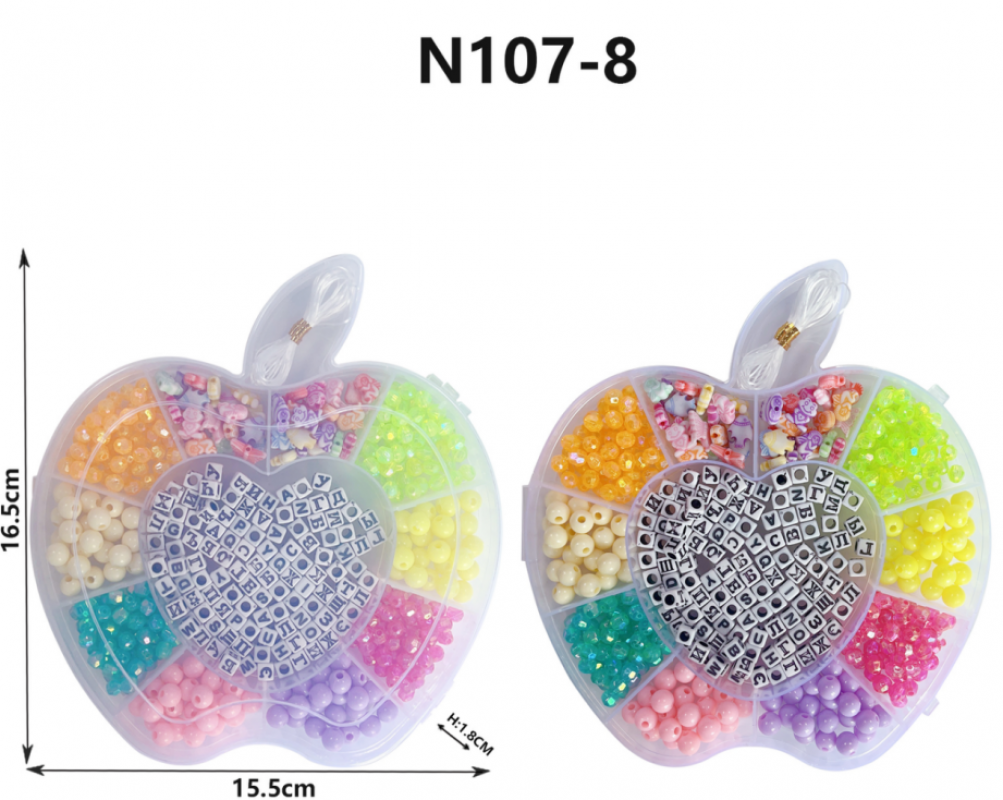 Set creativ de mărgele ideal pentru realizarea brățărilor și accesoriilor personalizate. Designul atractiv în formă de măr și compartimentarea practică oferă o experiență de utilizare plăcută și organizată.