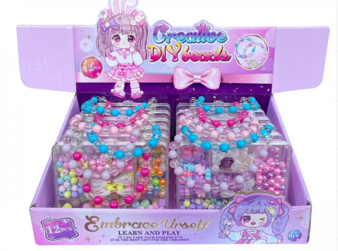 Set creativ de mărgele colorate, ideal pentru realizarea brățărilor și colierelor personalizate. Include o varietate de mărgele în culori vibrante și forme diferite, precum și un model demonstrativ de brățară, care oferă inspirație pentru creațiile proprii.
