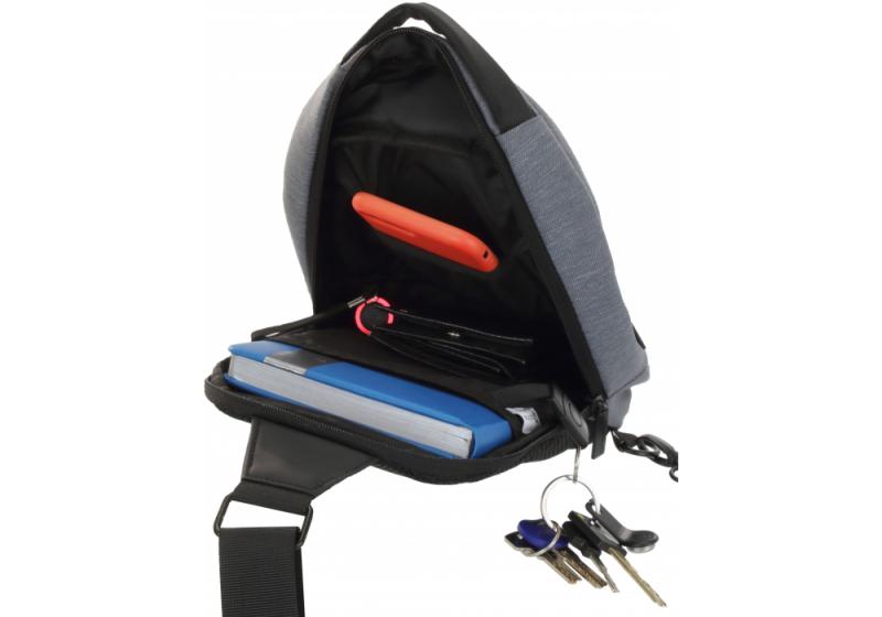 Dimensiuni: 25,4 * 17,8 * 8,9 cm. Compartiment - 1, buzunar pentru tabletă. Curea ergonomică de carabină cu capacitatea de a schimba poziția curelei de la stânga la dreapta. Buzunar cu fermoar. Material: poliester. Mâner robust.